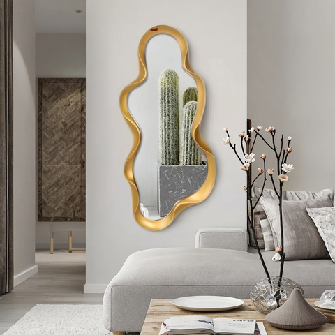Miroir mural en bois asymétrique, décoration intérieure SWT
