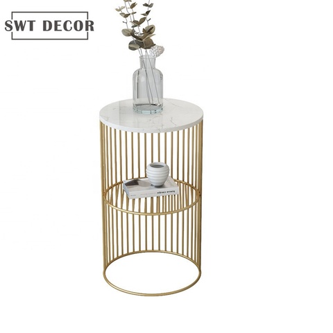 SWT Simple Design Marble Round Side Table Cheap Two Layers Decorative Sofa Side Table