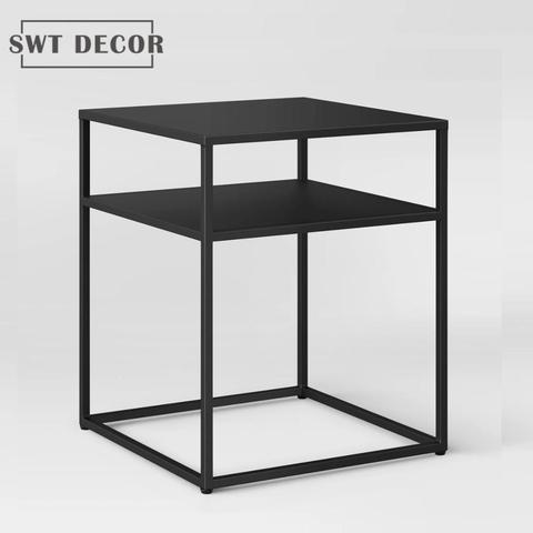 SWT 2020 New Living Room Furniture Nordic Metal Black Side Table With Shelf