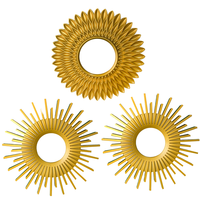 กระจกติดผนังทรงกลมรูปดวงอาทิตย์สีทองและสีเงินพีวีซีตกแต่งบ้านด้วยพื้นหลังที่ทันสมัย